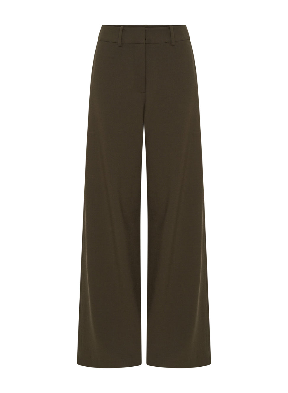 these wide leg trousers feature a flattering high rise waistline and internal pockets.