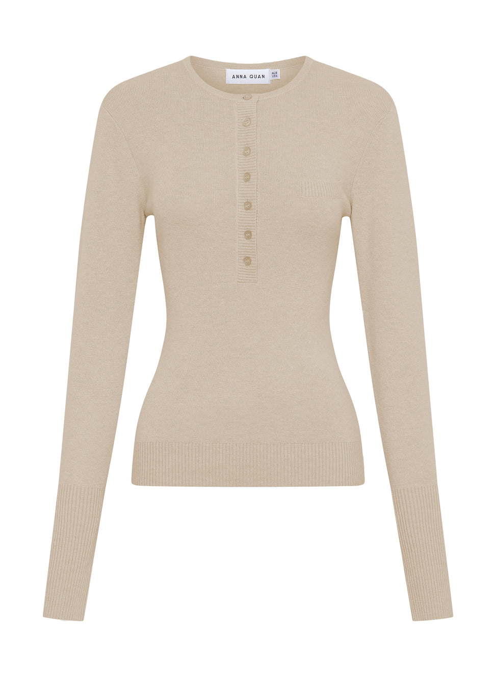The Mila Top in Almond is a versatile long sleeve top designed for transseasonal styling. A very fine soft merino wool composition allows you to layer throughout the seasons. With button up detailing on the chest and sleeves and refined ribbed detailing throughout for you to style on the hips or higher. We recommend pairing back with denim including our Kori Pants in Indigo.