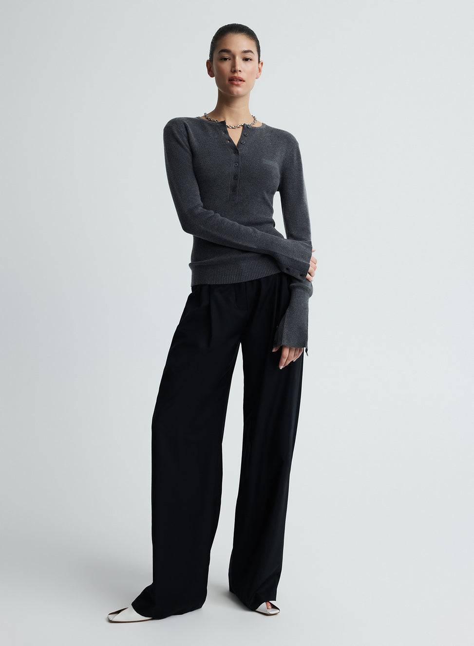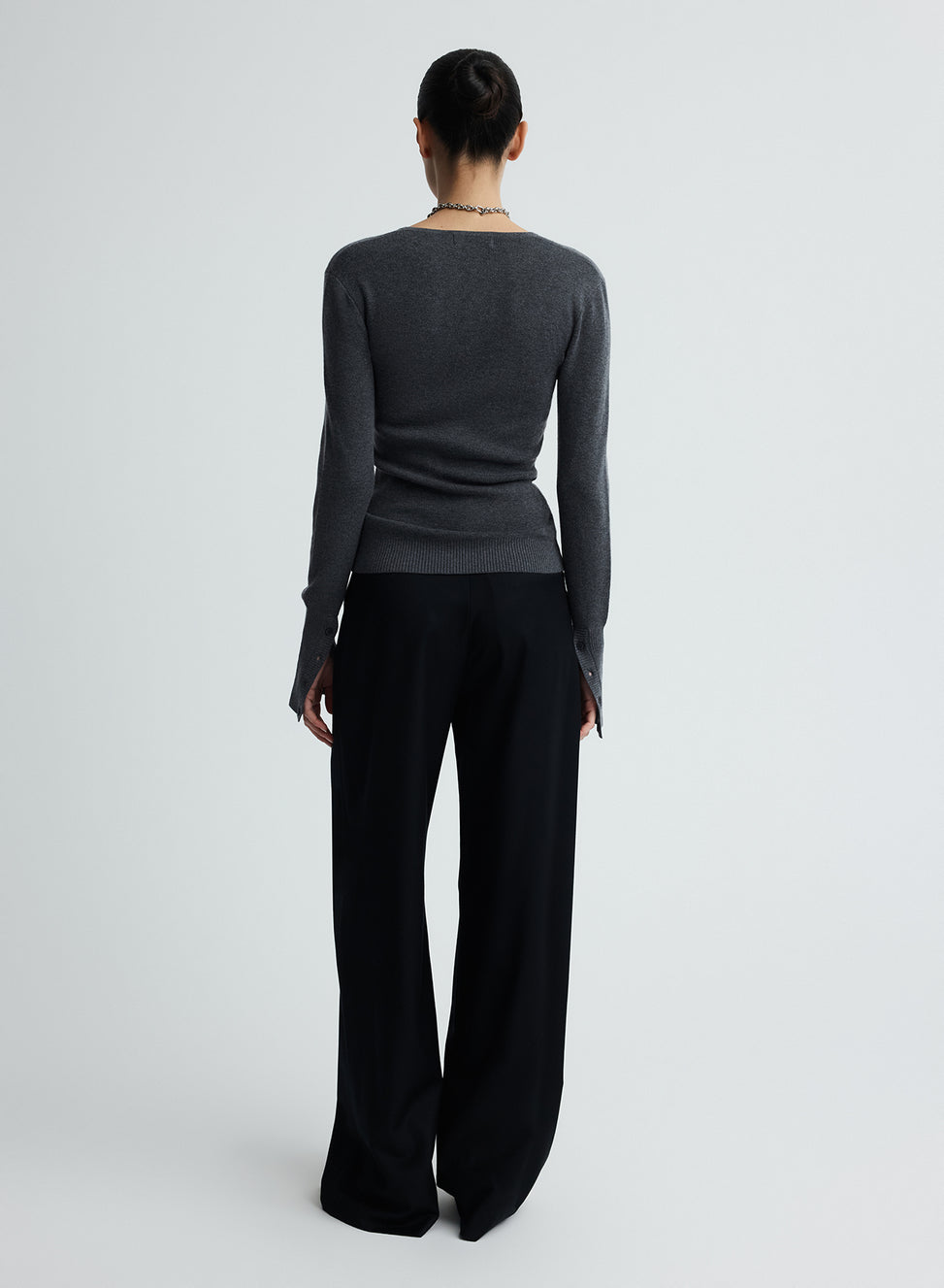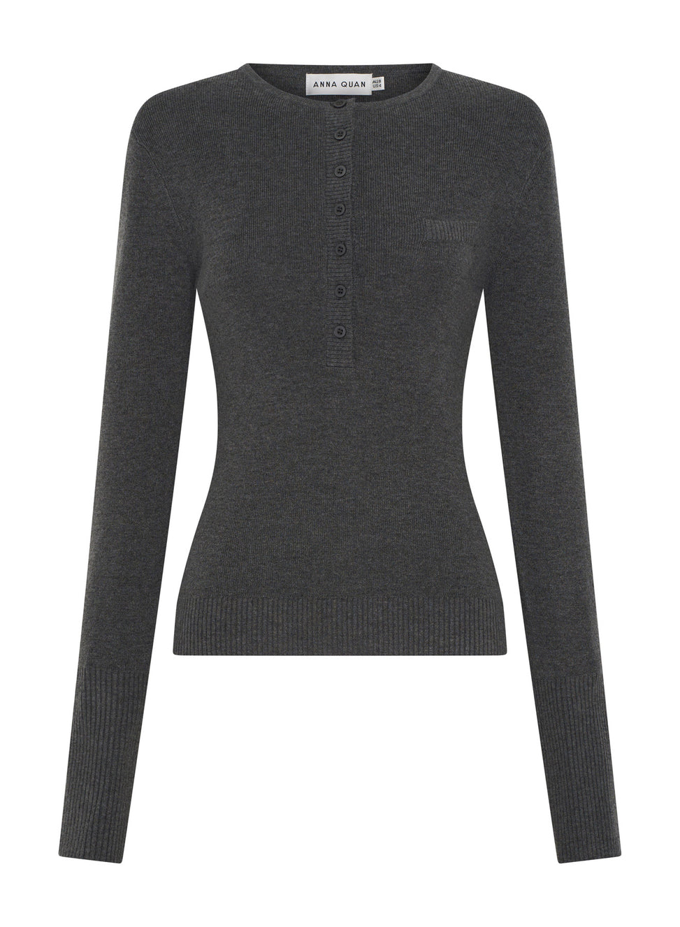 The Mila Top in smoke is a versatile long sleeve top designed for trans seasonal styling.