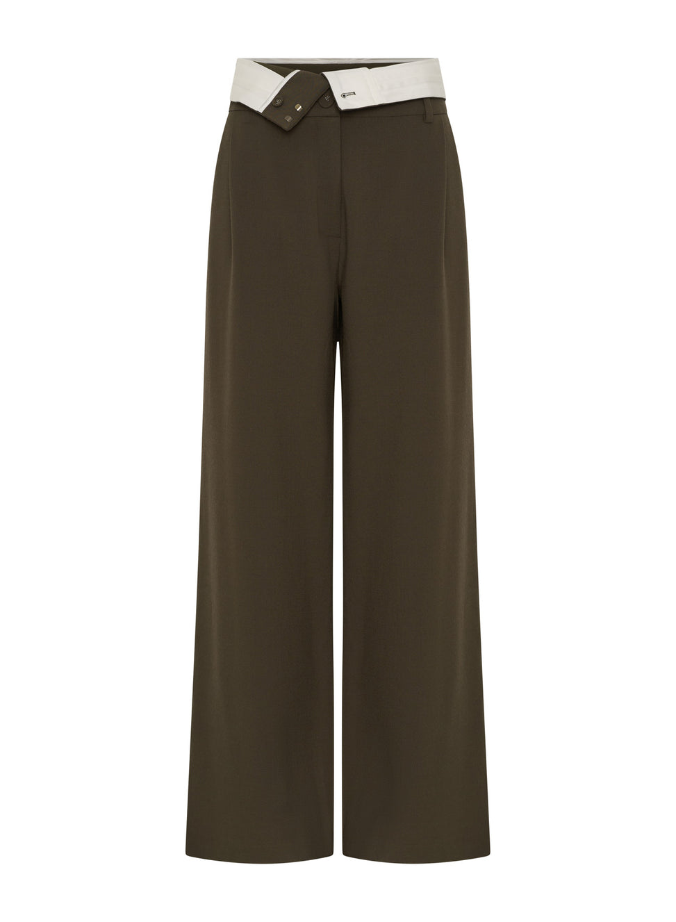 The Nyx Pants in Khaki offers a refined take on modern tailoring, cut in luxurious Italian wool and fluid wide-leg silhouette. Detailed with a contrast waistband, the Nyx are designed to transition seamlessly between seasons.